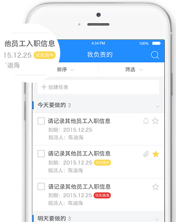 所有任務參與人共享信息 實時進行任務討論 相關文件共享 優先級標簽,大家做的有的放矢